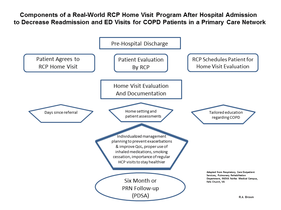 - Connors GA, Goel N, Harper G, Poffenroth M, Kopelen RA, Greenwalt GE, et al. INOVA Respiratory therapist home visits program after hospitalization to decrease readmission and ER visits for COPD patients in primary care network. Resp Care 2018; 63 (Suppl 10) 3025854.